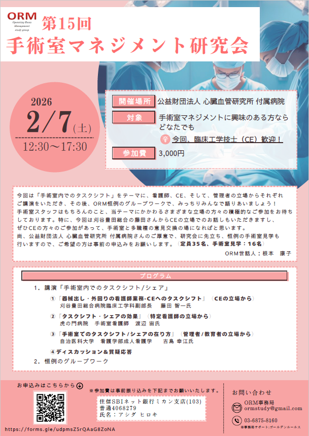 2026年2月7日(土) 第15回 手術室マネジメント研究会(ORM)のご案内